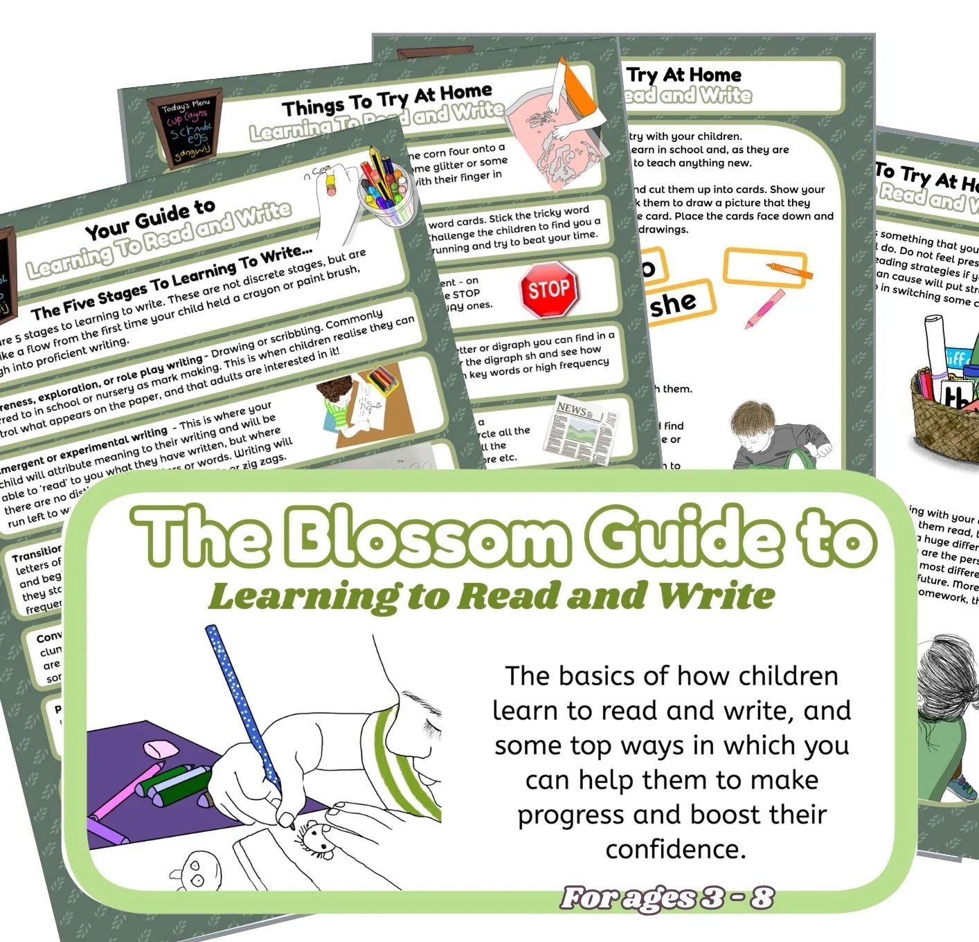 Helping your child to develop the will and the skill to write is simple when you have our amazing E- book, Ready To Write. Featuring many of our writing resources in 54 pages of help, guidance and support straight from the teacher’s mouth! We teach you how your child’s brain develops, how to start early with hand strengthening and co-ordination, pencil grip and drawing and move to the complex skill of letter recognition. Ready To Write is easy to read and is something you can dip in and out of as your child’s confidence develops. Our book talks you through supporting each stage right up to story mapping instilling confidence in every step!
